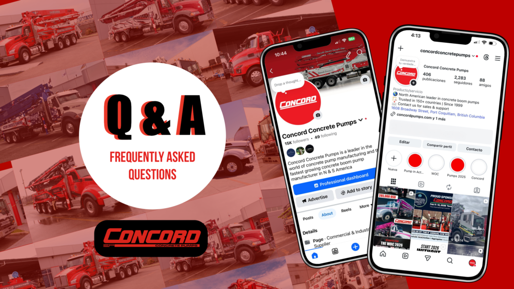 In this section, you’ll find answers to the most frequently asked questions about Concord Concrete Pumps, including delivery times, financing, technical support, parts availability, and service across North America and Mexico.